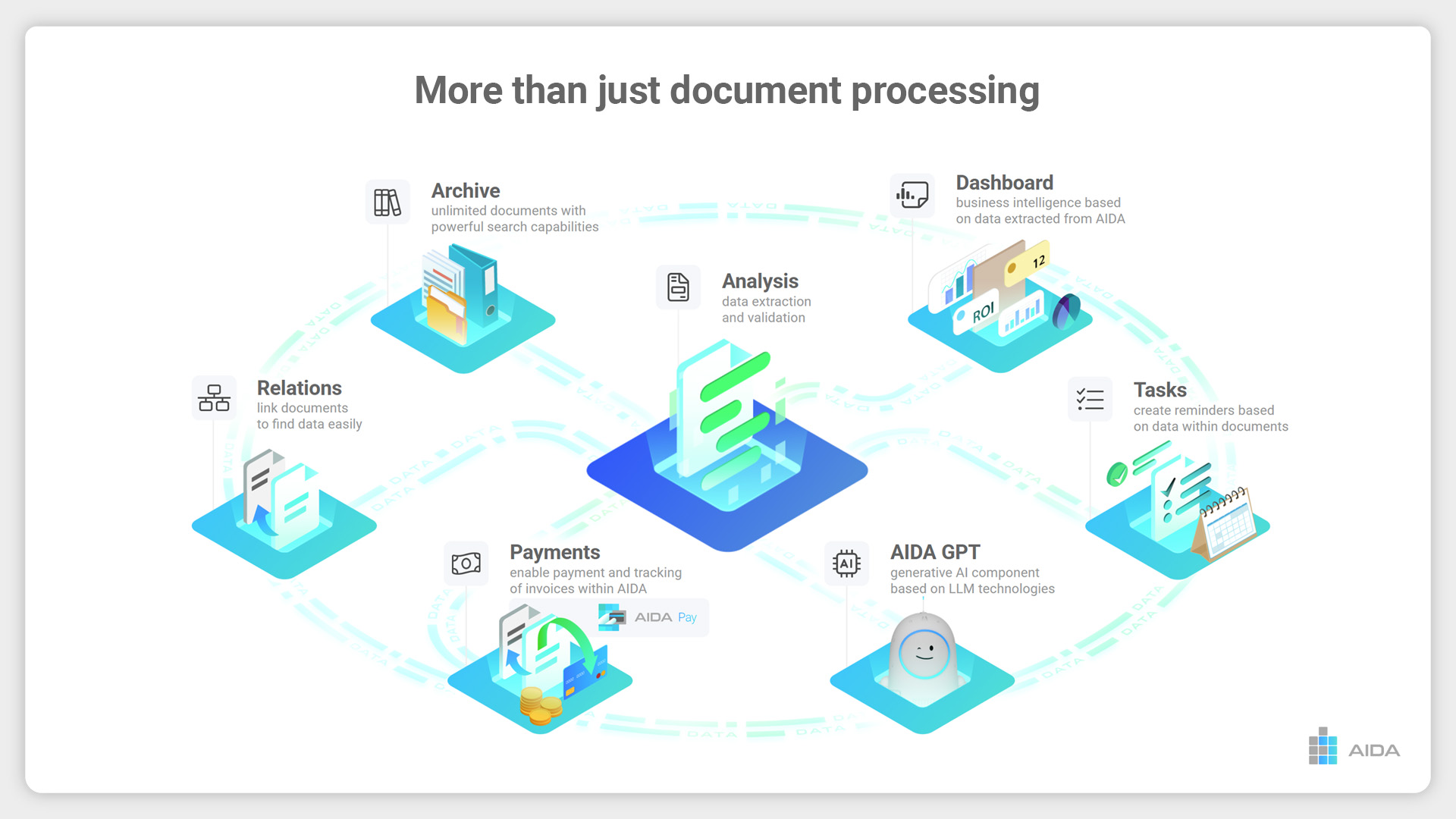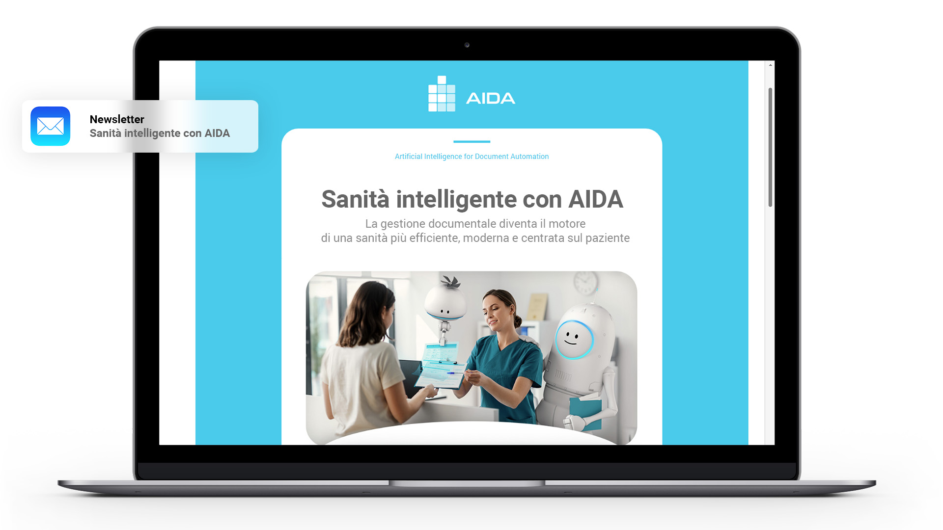 Creazione della comunicazione visiva e immagine coordinata per il software AIDA, leader nella gestione documentale attraverso l’AI.